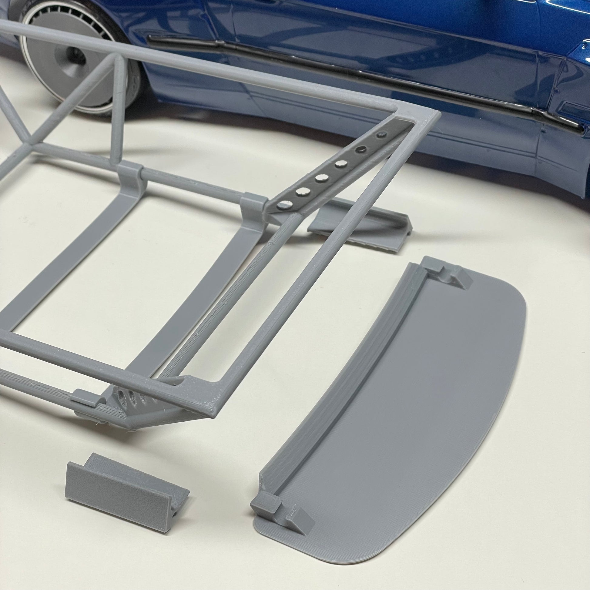 Custom designed scale 1 piece roll cage for the popular BMW E30 body found on the MST RMX series drift cars. This is not some one size fits all solution and has been specifically designed for the classic E30. This light weight (36 grams) design hugs the inner shell and is super easy to install with two "roof struts" which double side tape to the inside of your body shell. it comes with a snap in place dash and also comes with two snap in place mounts for our "Formula Drift" style drift lights (light/light system not included).